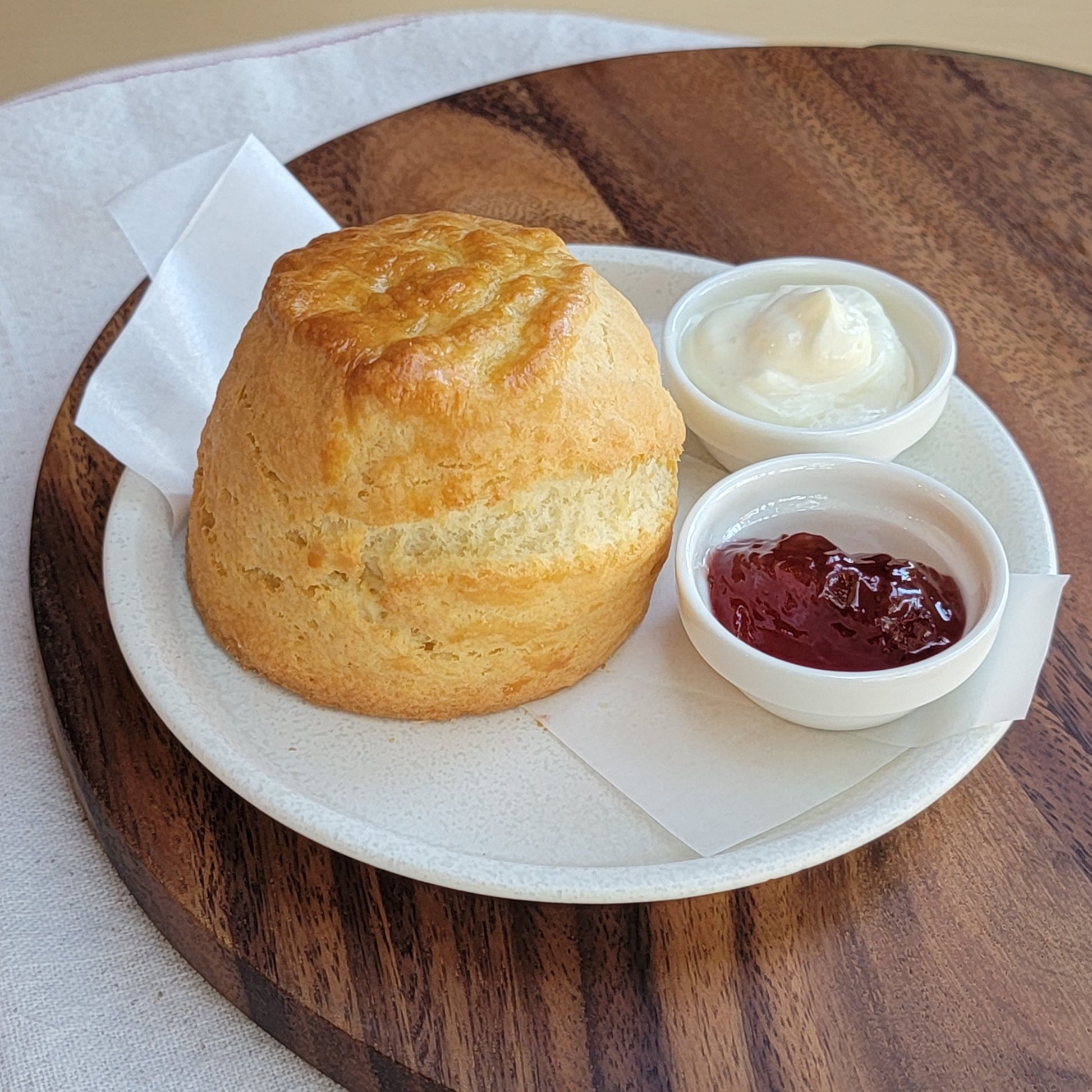 A traditional plain scone with a buttery, tender crumb — perfect on its own or paired with our homemade mascarpone cream.